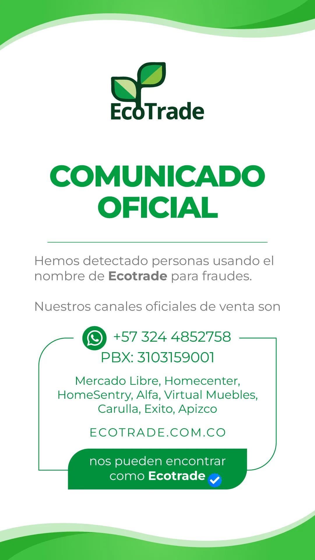 estará disponible para atenderte en los siguientes canales: