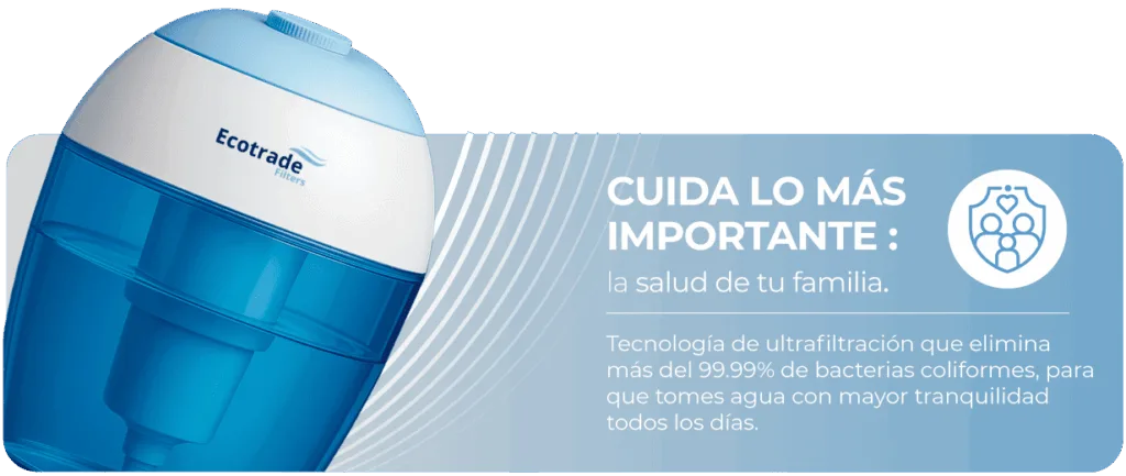 Desde que usamos el filtro Ecotrade sentimos el agua más limpia y con mejor sabor. Nos da mucha tranquilidad saber que elimina bacterias y que está respaldado por pruebas de laboratorio.
